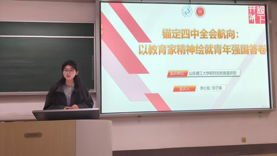 11月16日,李心如、刘子瑜在农业工程与食品科学学院学院开展主题为“锚定四中全会航向:以教育家精神绘就青年强国答卷”的理论宣讲活动。她们详细阐述了教育家精神的科学内涵,并号召同学们以更加饱满的热情和更加坚定的信念投身到强国建设当中,用自己的实际行动书写中华民族伟大复兴的青春篇章。