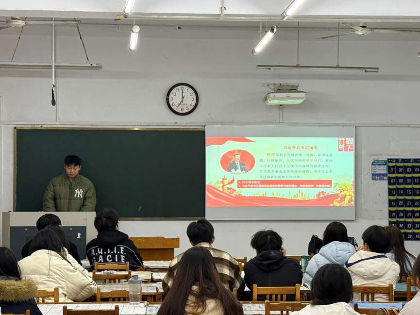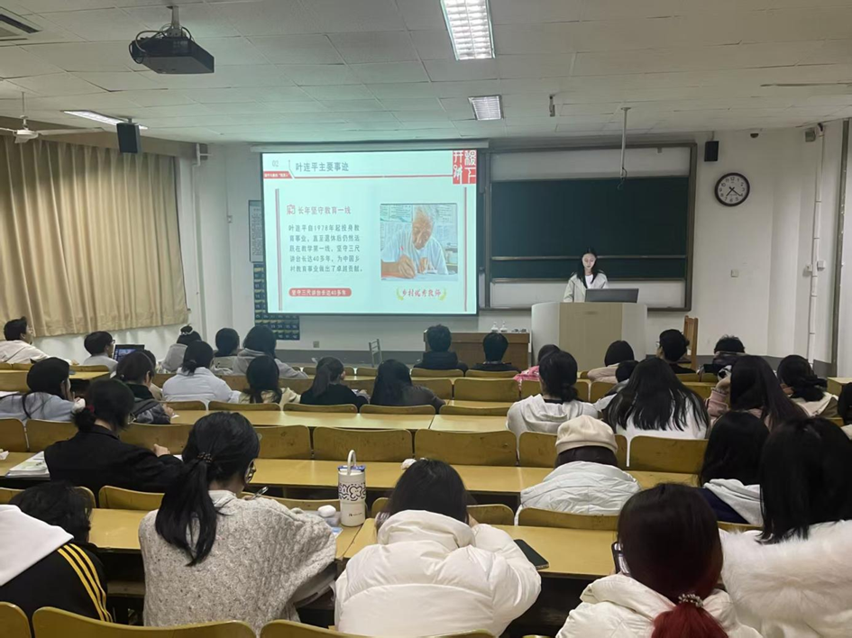 11月11日,杜佳、陈嘉睿到文学与新闻传播学院开展以“弘扬教育家精神,培育时代新栋梁”为主题的宣讲活动,通过对叶连平主要事迹的讲解,带领同学们深入了解了叶连平这位乡村教育坚守者的非凡人生,并号召同学们以叶连平先生为榜样,传承教育家精神,在新时代用坚守与奉献书写教育事业的奋进篇章。