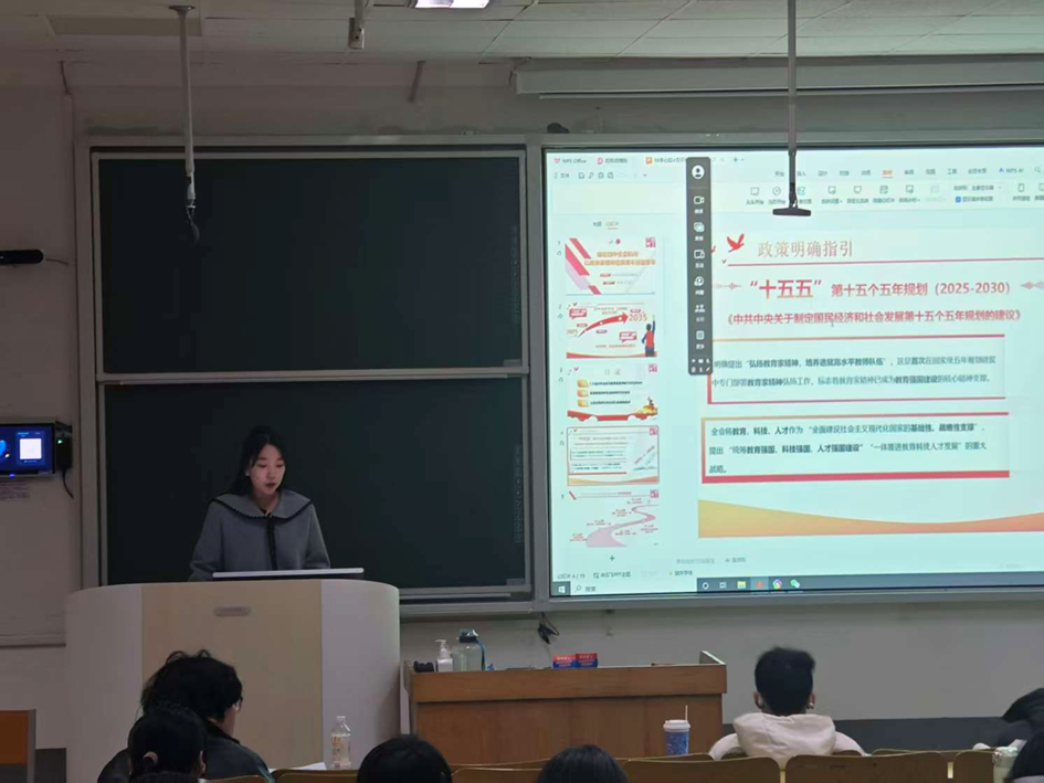 11月11日,张琳爽在外国语学院开展“以科学家精神燃青春之火”主题宣讲活动,她通过详细阐释多个鲜活案例,带领同学们深入感悟科学家精神的丰富内涵与时代价值,并呼吁大家要以科学家们为榜样,把精神力量转化为学习和未来工作的动力,在各自领域勇毅前行,为国家发展贡献青春力量。