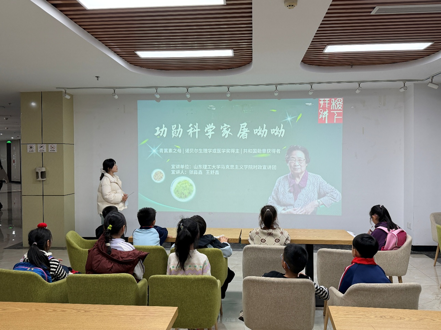 11月14日,张淼鑫在齐悦国际社区开展“学习屠呦呦科学家精神”为主题的理论宣讲活动。她深刻讲解了屠呦呦“甘坐冷板凳”的事迹,阐释了科学家精神的科学内涵,并号召同学们将个人理想融入国家使命、培养以科技创新服务人类命运共同体的情怀。