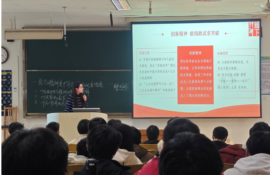 11月11日,尹嘉乐、王钰冉到交通运输与工程学院开展主题为“永不褪色的科学家精神--黄旭华、彭士禄的赤子心”的宣讲活动。她们结合珍贵史料与人物故事,带领大家重温了彭士禄从烈士遗孤到核电先驱、黄旭华隐姓埋名三十年铸就国之重器的峥嵘岁月,详细阐释了科学家精神的核心要义与发展脉络。