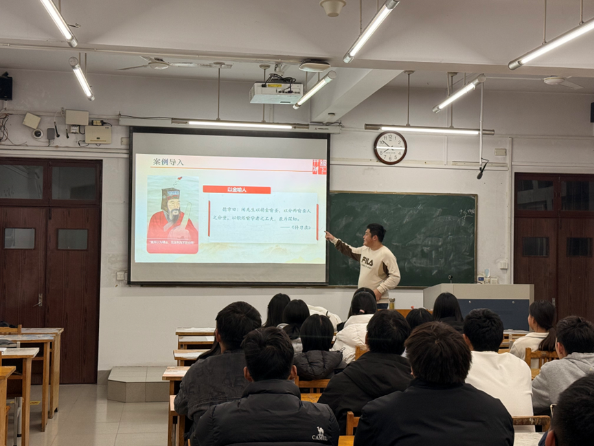 11月16日,程智康、耿崇硕在管理学院开展以“以教育家精神为炬,点亮新时代教育征途”为主题的宣讲活动。他们号召在场学生教育家精神不是遥不可及的光环和标杆,而是融入日常教育教学的用心和行动,只有将教育家精神内化于心、外化于行,才能成长为教育家精神的传承者和践行者。