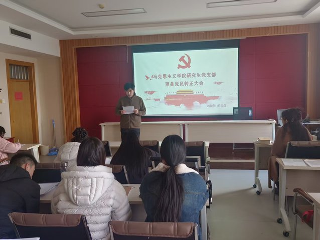 为强化党员政治素养、夯实支部队伍建设,11月20日下午,我院研究生党支部于鸿远楼618室召开预备党员转正、接收大会,并组织开展党支部书记讲党课活动。会议由党支部书记侯振中主持,支部全体党员参加。