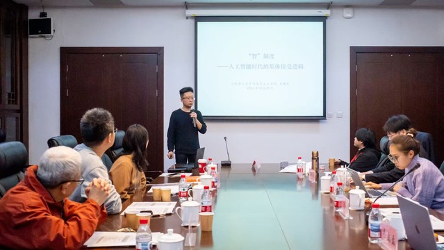 报告环节中,我院讲师李健民以“‘智’制度——人工智能时代的集体接受逻辑”为题作主题发言,基于塞尔的社会本体论,分析了人工智能时代制度性事实建构逻辑的嬗变。他指出,传统制度依赖集体意向性通过“X在情境C中算作Y”的规则赋予地位功能;而AI介入后,通过算法调制、地位功能算法化、制度维度智能化实现制度的持续再生与强化,重塑了集体接受的路径。然而,这种逻辑嬗变也带来了合法性、程序正义与人的主体性危机,他强调必须嵌入人类价值、构建集体责任机制并捍卫人类最终权威,实现以人为本的“人机协同”社会。