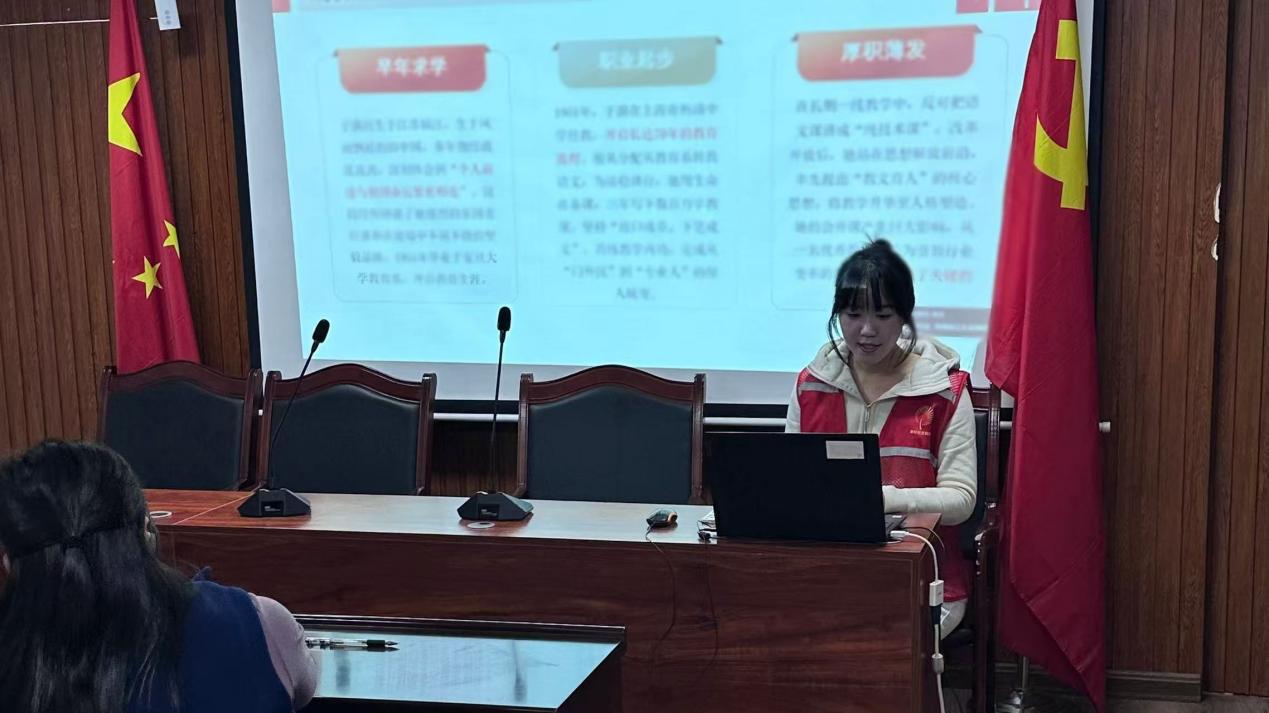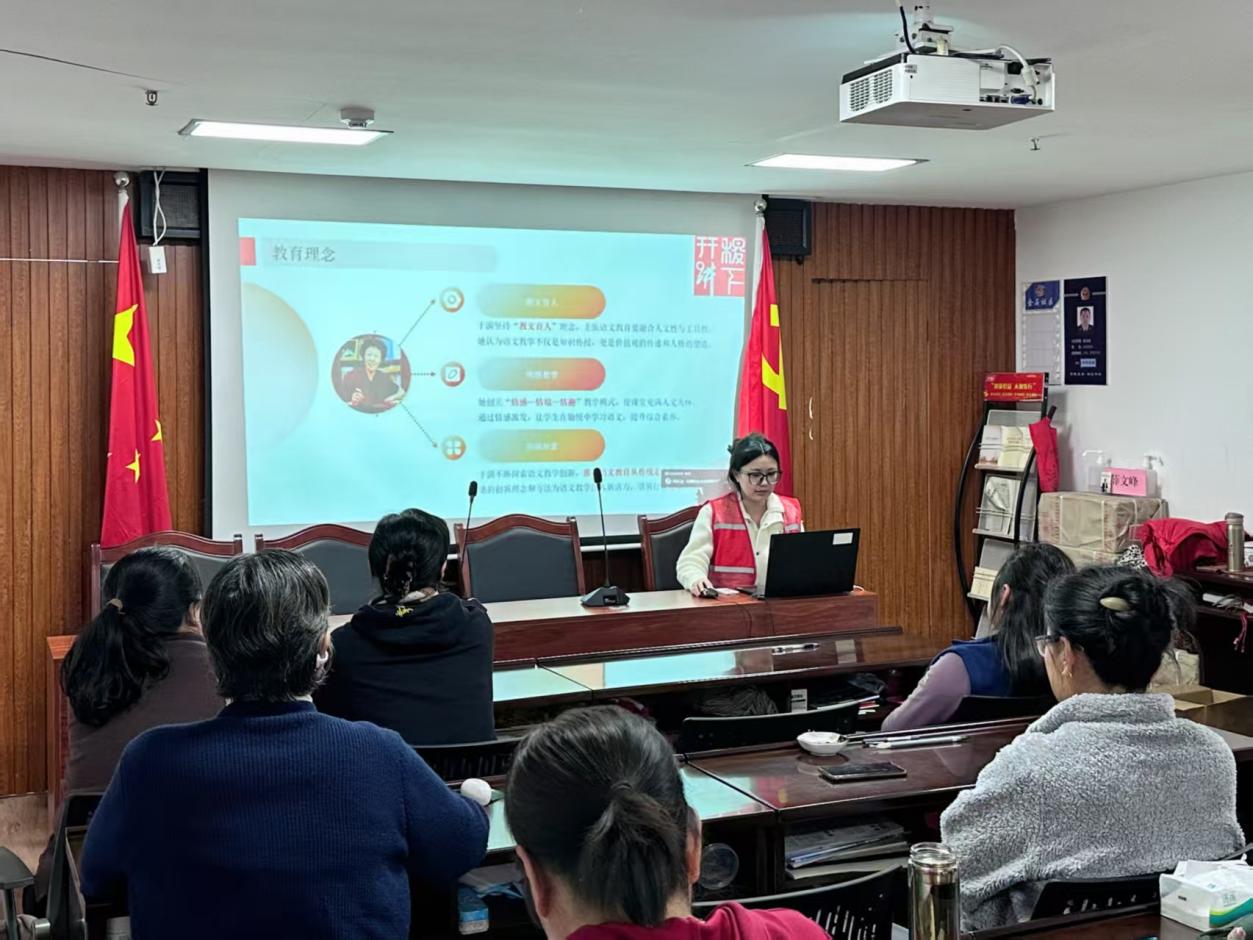 11月26日,周金莹在金石晶城社区党群服务中心开展主题为“人民教育家于漪:用爱与责任铸就教育丰碑”的理论宣讲活动。她围绕人物总览、主要事迹、人物评价和学习感悟四个层面展开,强调于漪的教育理念对“双减”背景下落实立德树人任务具有重要指导意义。