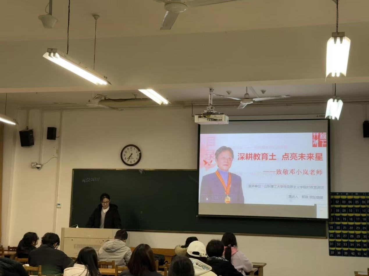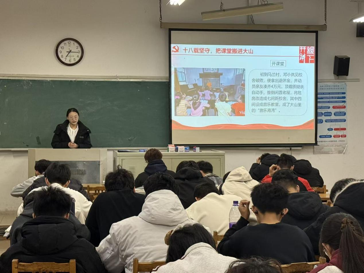 12月7日,欧阳璐璐在建筑工程与空间信息学院开展主题为“深耕教育土 点亮未来星——致敬邓小岚老师”的宣讲活动。她通过详细介绍邓小岚老师的生平事迹,以及邓小岚精神带来的影响,号召同学们以邓小岚老师为榜样,争做教育家精神的传承者和践行者,为加快建设教育强国奉献出自己的力量。
