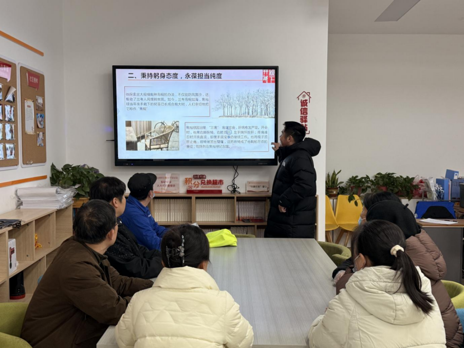 12月1日,丁嘉铭、孙越在世纪花园社区开展以“弘扬焦裕禄精神,提升自我‘纯度’”为主题的宣讲。宣讲围绕焦裕禄精神的亲民爱民、艰苦奋斗、科学求实、迎难而上、无私奉献等内容展开,并结合焦裕禄三次申请入党、带病治理“三害”、严守纪律原则等事迹,呼吁大家以焦裕禄为榜样,从邻里互助、勤俭持家、参与社区建设等日常小事做起,共同营造和谐温暖的社区环境。