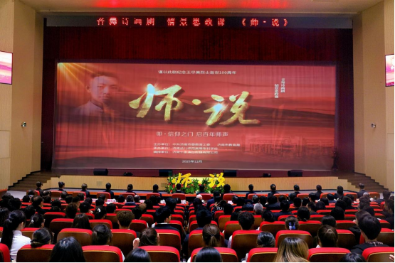 24日晚,与会人员在济南幼儿师范高等专科学校尽美大剧院共同观看了音舞诗画剧、情景思政课《师·说》首演。