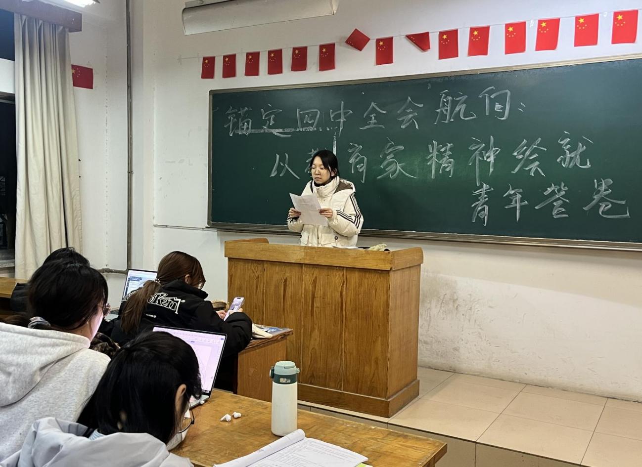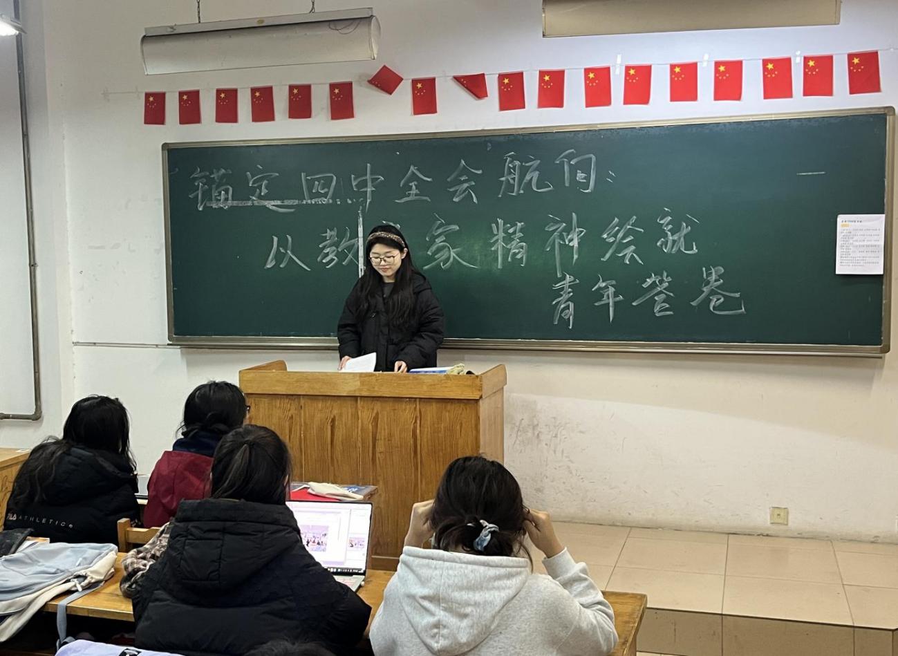 12月22日,刘子瑜、李心如到外国语学院开展主题为“锚定四中全会航向:以教育家精神绘就青年强国答卷”的理论宣讲。她们围绕“二十届四中全会为教育家精神赋予时代新坐标”、“教育家精神和全会精神的内在契合”与“以全会精神为指引践行教育家精神”三个部分展开宣讲,鼓励大家以更加饱满的热情和更加坚定的信念投身到中国式现代化的建设当中,用自己的实际行动书写中华民族伟大复兴的青春篇章。