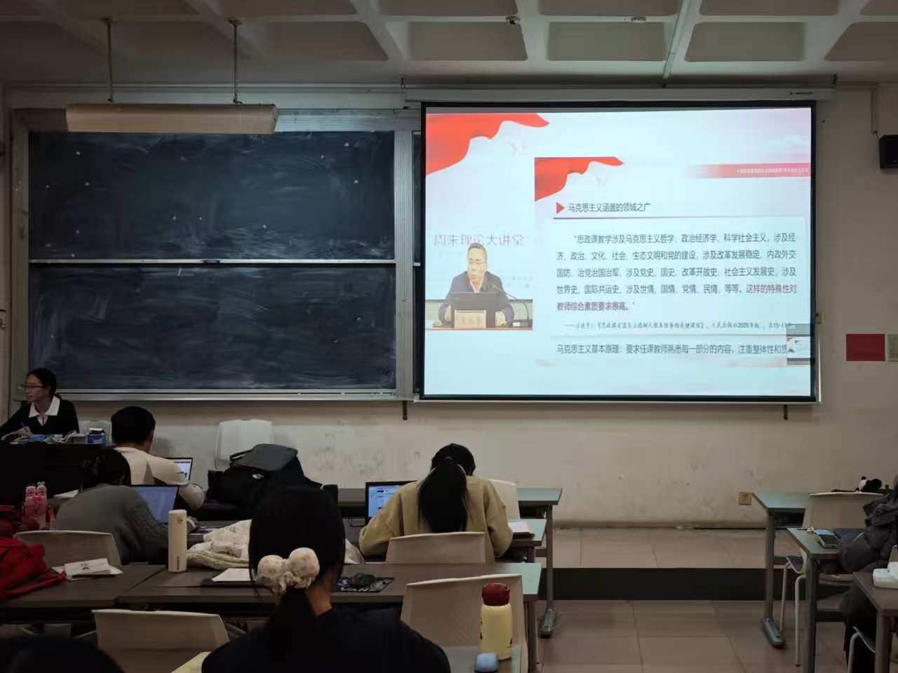 为深入弘扬伟大爱国主义精神,强化思政课育人实效,提升青年学子的使命担当意识,12月30日下午,我院组织25级研究生在一号教学楼305室观看“周末理论大讲堂”,本期理论大讲堂由重庆师范大学马克思主义学院教授兰桂萍和南京师范大学马克思主义学院教授王永贵担任主讲人。