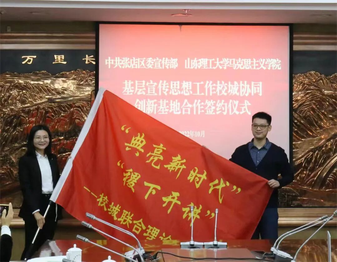 2022年10月,我院与淄博高新区宣传新闻中心共建淄博高新区·山东理工大学马克思主义学院——“红火炬·齐新领航”校城融合协同创新基地。在理论宣讲阐述、党建协同创新、企业文化研究、融媒共享实践等平台共建共享,努力打造校城合作示范工程。