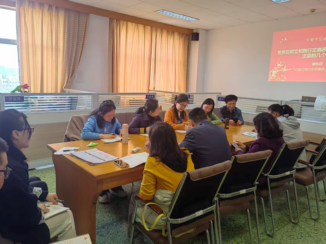 为有效开展树立和践行正确政绩观学习教育,进一步加强党员思想政治建设、强化党性修养。3月26日下午,中国近现代史纲要教学部党支部书记康兆庆以“党员树立和践行正确政绩观应注意的几个问题”为题讲授专题党课。党支部书记康兆庆主持会议,党支部全体党员参加。